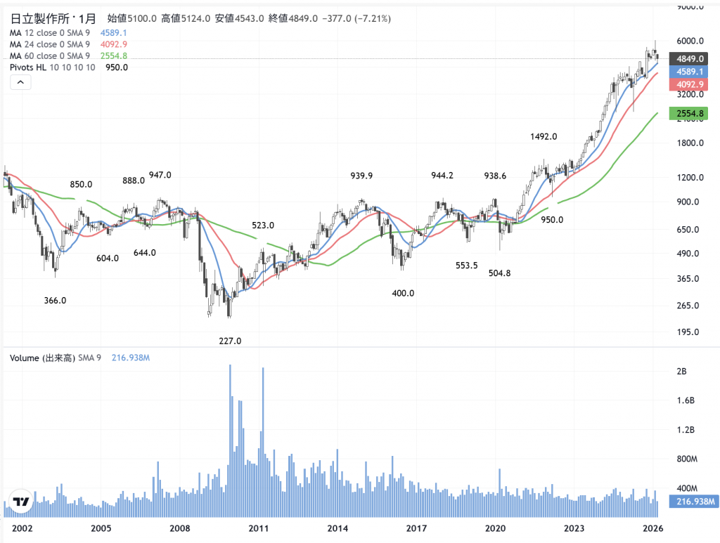 日立製作(6501) の月足