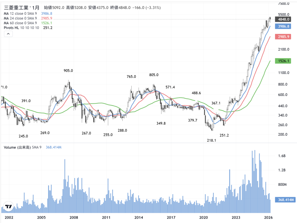 三菱重工 (7011) の月足