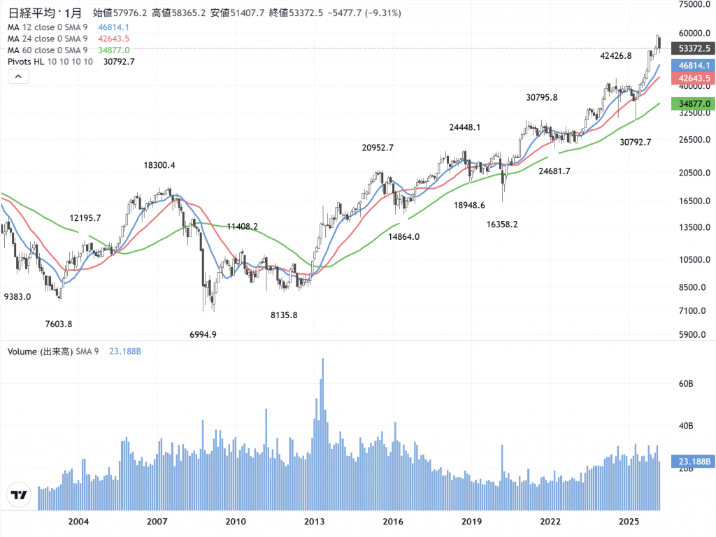 日経平均株価 の月足