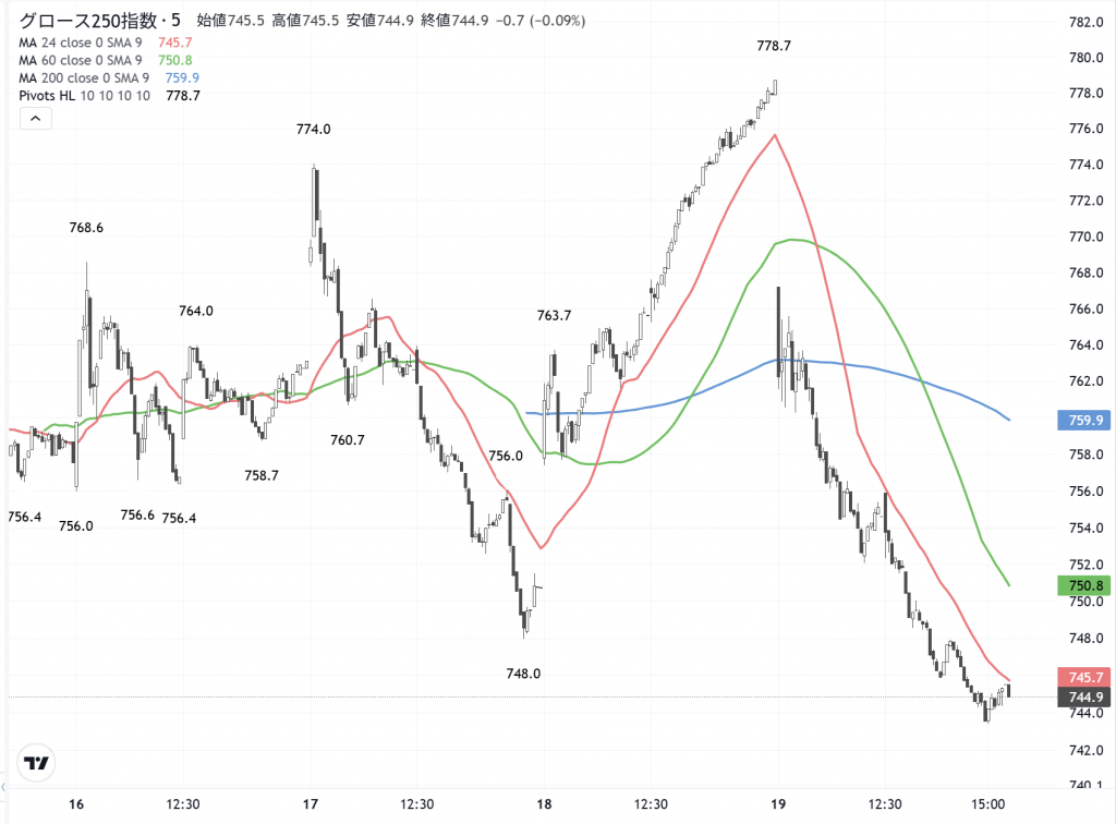 グロース250指数の5分足
