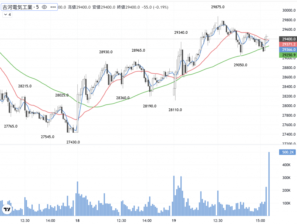 古河電工(5801)の 5分足