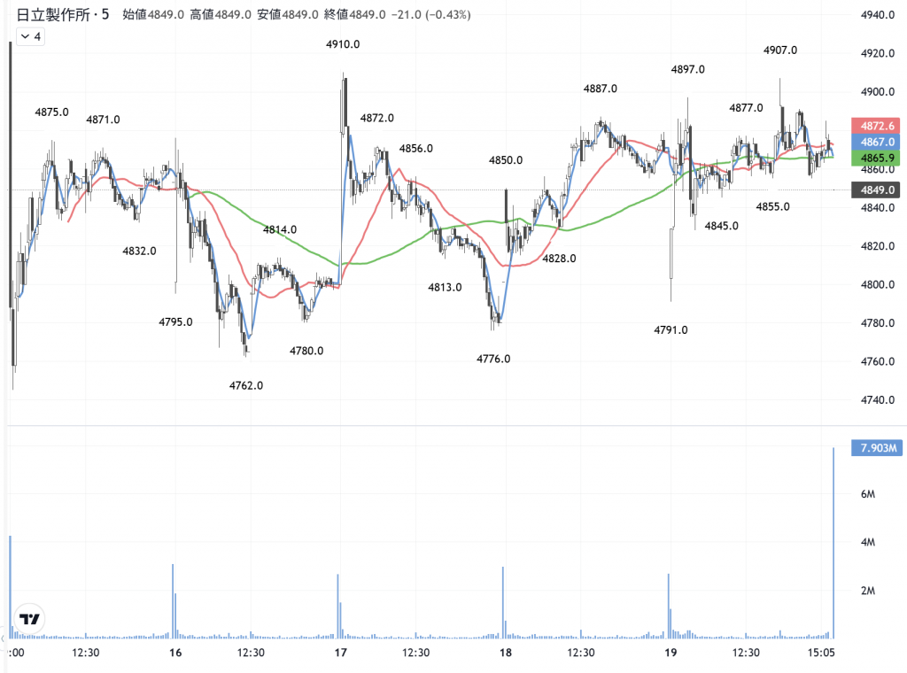 日立製作所(6501)の5分足