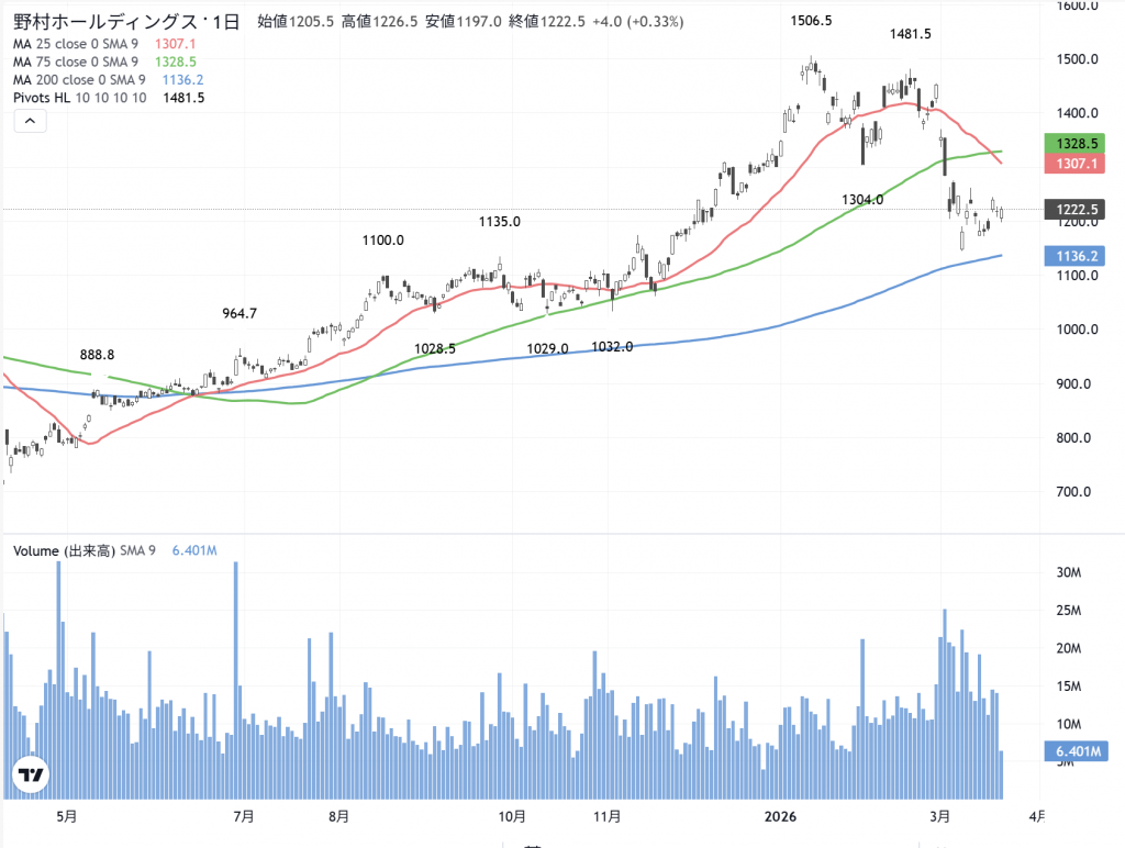 野村証券(8604)なんか…なかなか強いでしょう。下げているうちに入りません。カタルが皆さんと共にやったジェイドG(3558)も、あの時に一緒にやった株価の1500円を下回りませんね。つまり…まもなく時間が来ます。