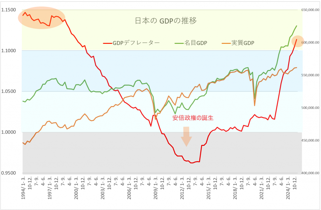 日本のGDPデフレーターの推移