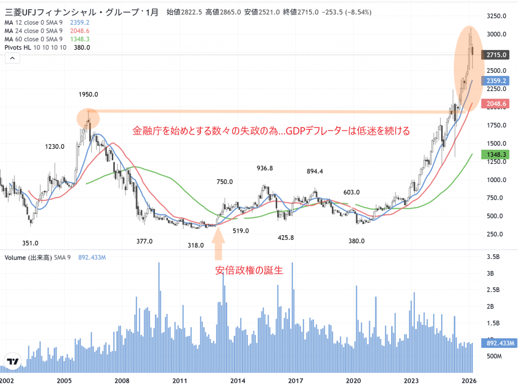 三菱UFJ(8306)の 月足