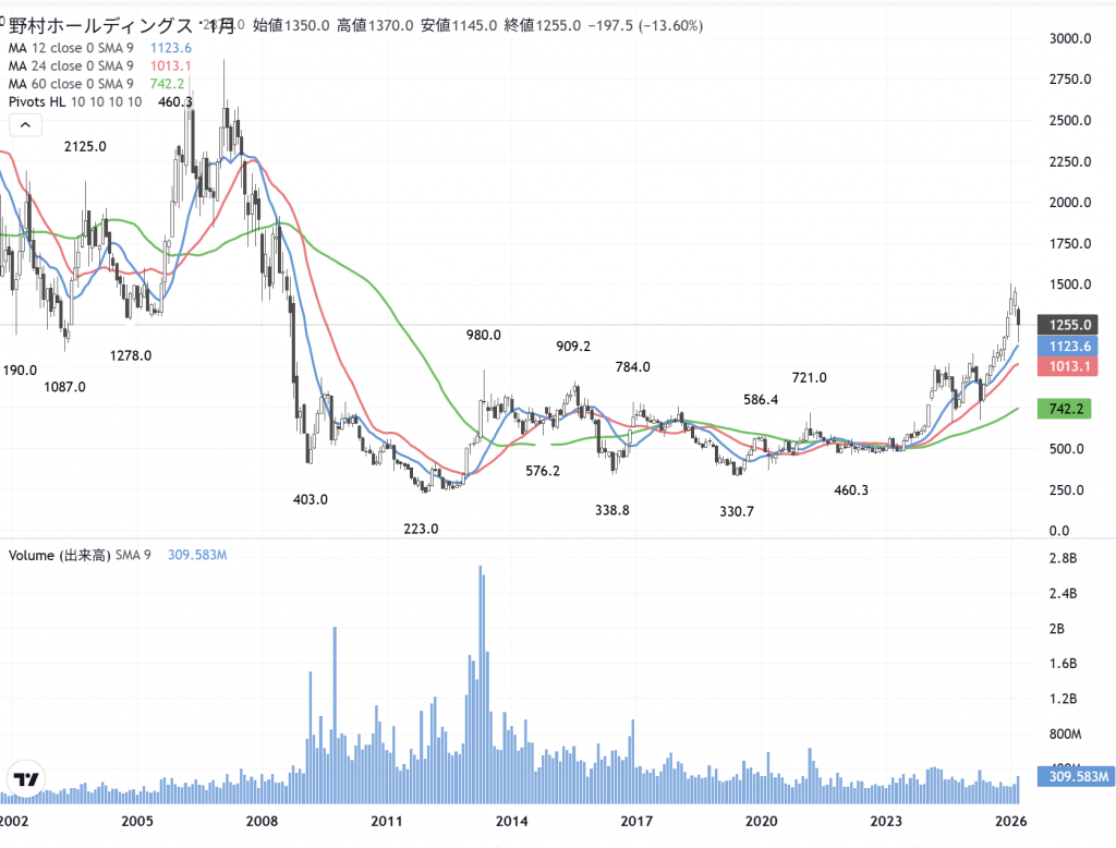 野村証券(8604)の月足