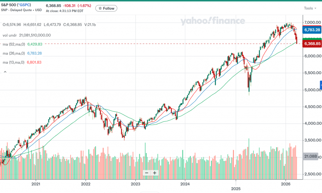しかし米国株が下がったと言っても…ようやく「乖離調整」が終盤なのでしょう。今は日々線でようやく…200日線を割れた所です。これでは、なかなかイメージが掴めませんから、更に時間軸を延ばし…週足を観ると、今はようやく52週線に届いたところです。前から、乖離調整が「気になって」いました。