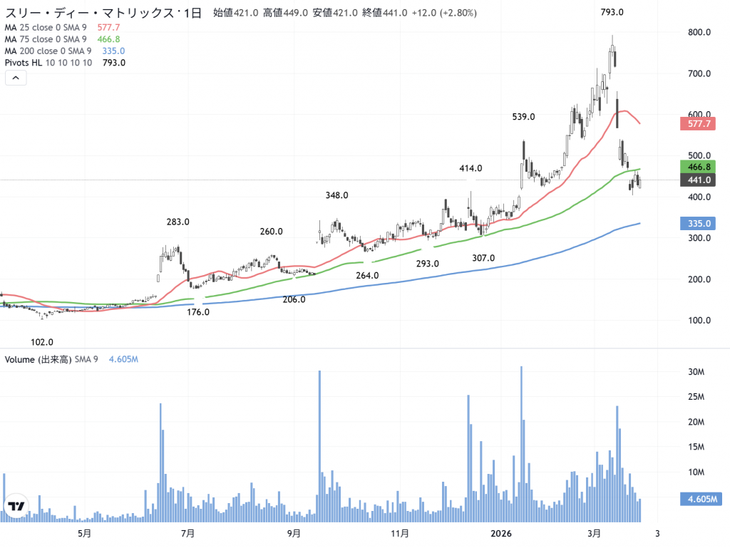 株式市場も似たようなものですよ。人気が過熱すれば、株価が上がり、そうしてお決まりの「乖離調整」です。皆さんは、カタル銘柄でも…最近のヒットは3Dマトリックス(7777)かな?