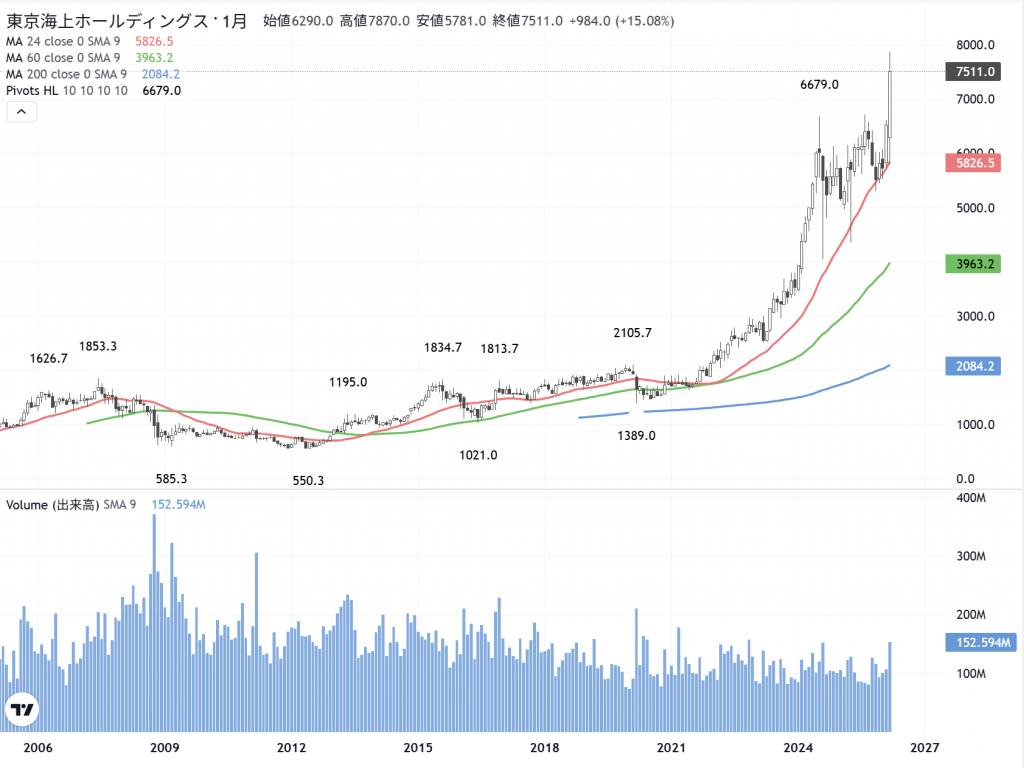 東京海上HD(8766)の月足
