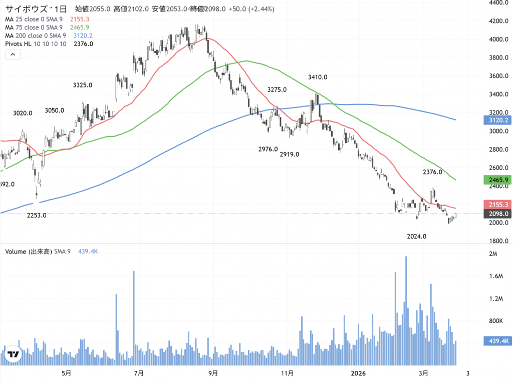 サイボウズ(4766)の 日足