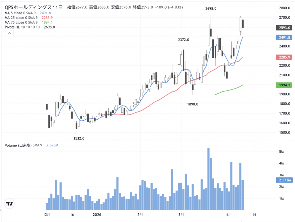 投資は自分自身で決めるものですよ。他人が推奨したから、株を買ったとか…。売ったと言うレベルではありません。あらら…利食いをした宇宙関連のQPSホールディングス(464A)は、更に、株価が上昇しています。情報は「使い方」次第の実例です。会員の方が賢く利用しているなら嬉しいですね。
