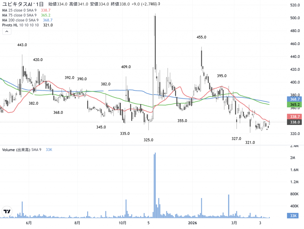 その関心のある銘柄の一つのユビキタス(3858)を339円で1000株のお買い上げです。この株はエヌビディアの関連です。量子コンピュータ関連で、昔、賑わったことがある「偽物銘柄」です。可能性を持っている素質のある株は、毎日のように出現をします。最近は、相場全体の反転時期でしょうから…「良く見える」銘柄がたくさん生まれています。カタルだって…分からないのです。