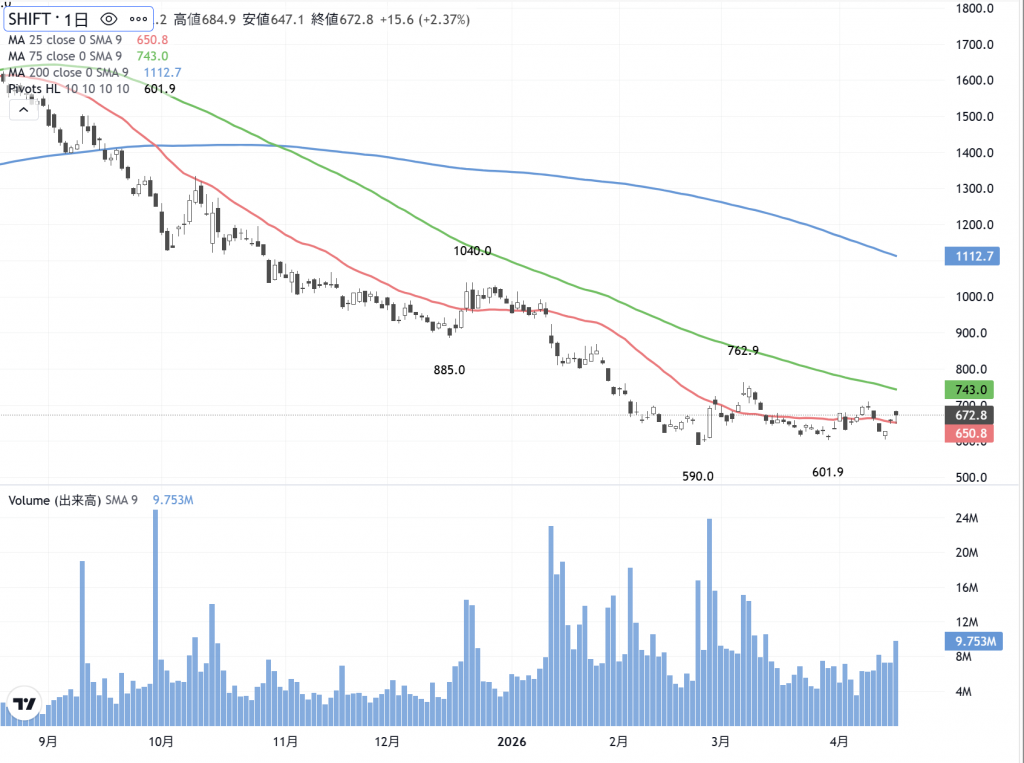 アララ…相場を観たら、自社株買いをしていたベイカレント(6532)はストップ高をしています。同じように自社株買いをしている…ライズはストップ安で明暗が割れています。果たして買いにくいSHIFTは、どうなるのでしょう。