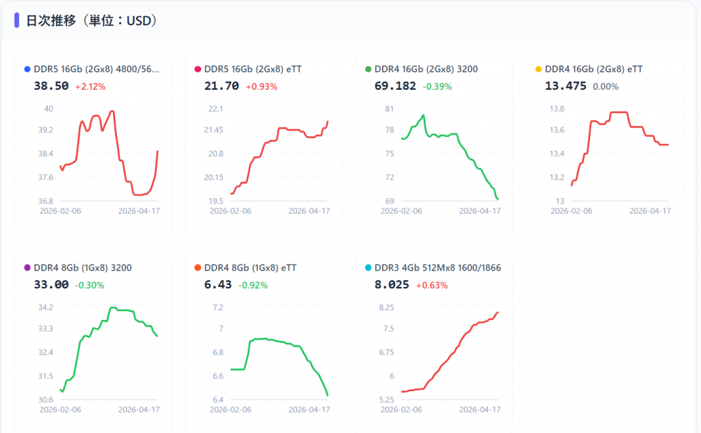 今のDRAM相場の様子