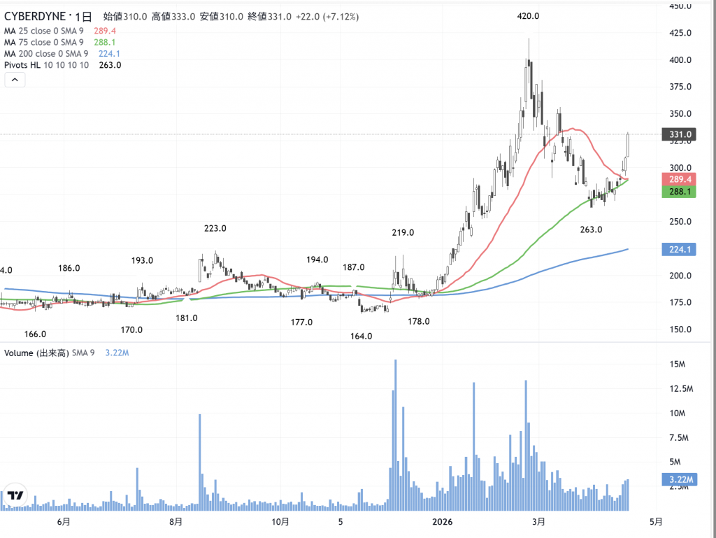 サイバーダイン(7779)の日足