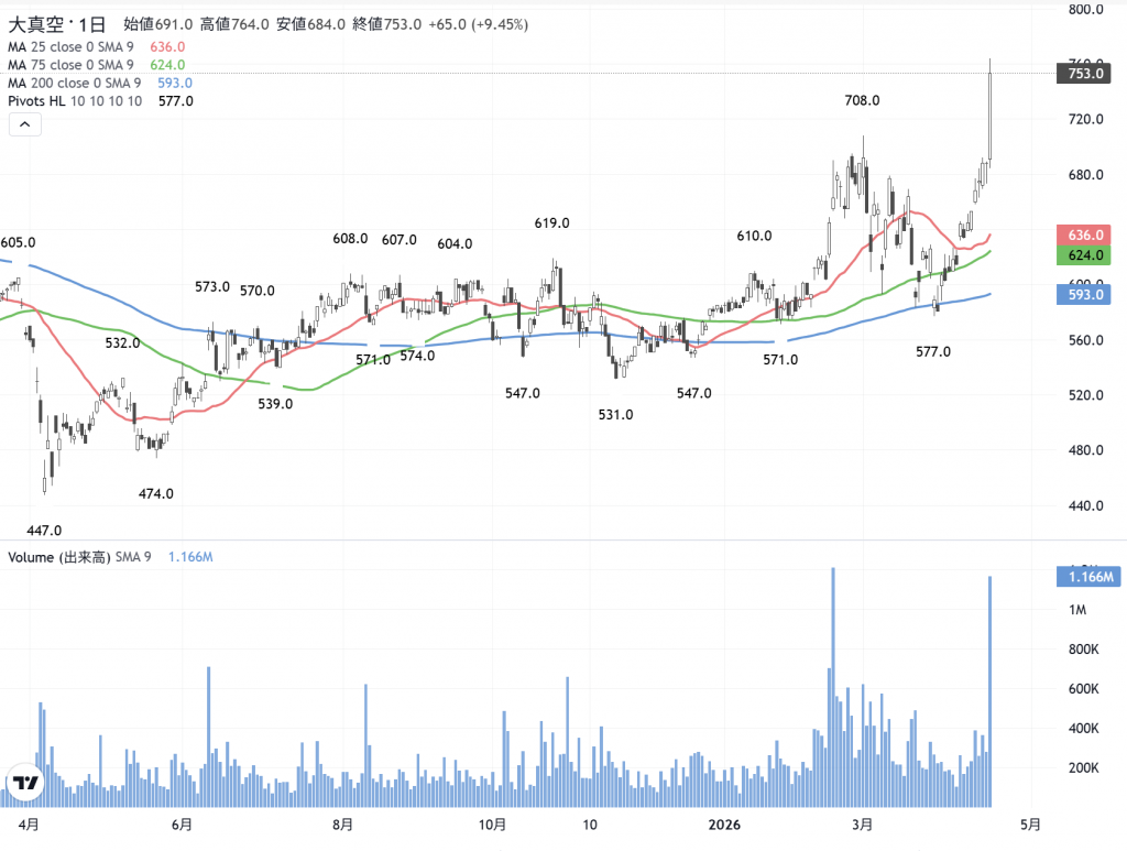 この大真空(6962)は仕手性がある人気株だから、必ず…市場で人気株に成るだろうと思っていたのです。こう言う感覚は、長年のキャリアがないと分かりません。折角、株を買っている時に人気にならず、全体市況の改善を待って「仕掛け」が始まったのでしょう。