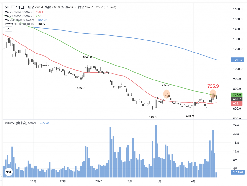 あらら…またSHIFTは700円を割れました。折角、株を買ったのに…あの時と同じです。そうして604.2円を付けたのです。しかし…「おかしいなぁ~」昨日の米国株のサービスナウ(NOW)も強く…セールスフォース(CRM)も株価が上がっていたのです。あと一歩で米国株も…株価波動が変わります。例の…「SaaSの死」と言う考え方は、間違っていると言う仮説です。だから一気に「株価波動」が変わる…と思っているのです。