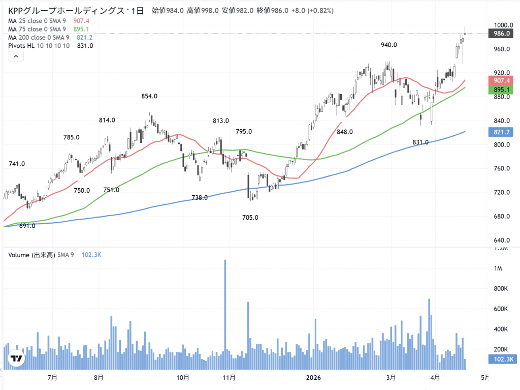 この過去の推奨株ですが、他にもあります。この感覚はユニチカ(3103)と言うか…板ガラス(5202)に近いのかな? 身の丈以上のM&Aを実施して、借金の負担が大きく…時間を待つケースですね。銘柄名はKPPG(9274)です。自己資本比率が22%台で低いのですが、好業績でした。M&Aも難しいのです。ジェイドGの田中君の手腕が光ります。いずれもカタルの推奨株が、時期がズレて騰がっているパターンです。