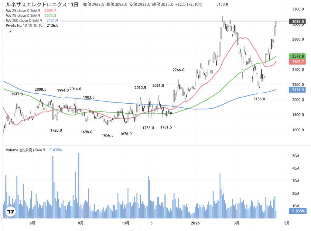 そう言えば…読者からも喜びのメールを多くいただいています。その中で、損をしない投資でも、買い注文を用いていましたが、買い逃したルネサスエレク(6723)も…有りましたね。今日は、株価がまた3000円台に入っています。これが「仕掛け人」の違いです。