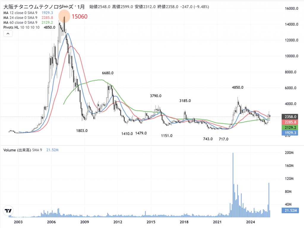 例えば「大阪チタン」(5726)にしましょうか…。この株は「スポンジチタン」を作っている会社です。チタンと言っても「酸化チタン」とか…色々あります。化粧品や医薬品や光触媒など…色んな用途があるようです。でも航空機や宇宙ロケット、軍事目的のミサイルや原子力潜水艦などに使われるチタンは「スポンジチタン」です。一番の生産地は、今は…中国かな? ロシアや米国も、作っています。カザフスタンもそうですネ。