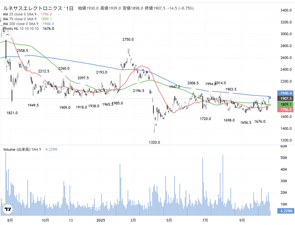 同時にカタル達が、最近、打診買いをした「ルネサスエレク」(6723)の追い風になります。今日の株価は動いていません。でも株価は1900円台です。先日、僕らが株を買ったのは、確か…1750円だったかな? でも1700円は買えなかったのです。この辺りが…この株価の下値なのでしょう。自分で「相場」に参加していると…このように「相場観」が育まれます。この銘柄は時間が掛かります。そうして今はまだ「危ない投資」ですからね。覚悟してください。