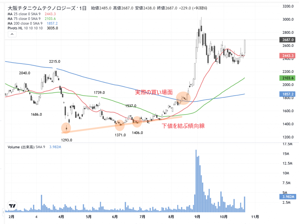 この理由は、過去の2年間近い…トラウマです。大阪チタンが「あっという間に」買いチャンスの分岐点である200日線は1745円でした。そこから一気に3035円です。この爆発力は、空売りの踏みも在りますが、事前の布石です。