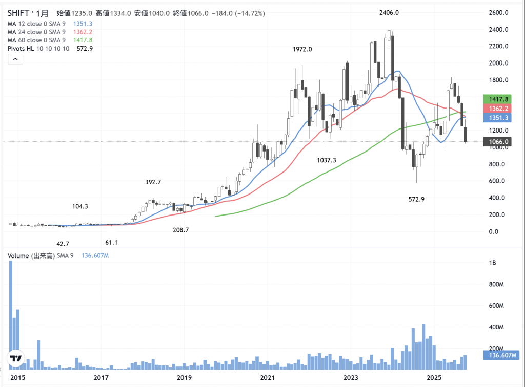 しかし…カタルは5月の連休に「ジェイドG」(3558)の失敗から…初めて「SHIFT」(3697)の存在を知ったのですが、今日は「成長力」が株価を押し上げる話しです。それを観ましょう。この会社の売上高成長率は、非常に高く2013年から2022年までの10年間の平均値は55.39%です。