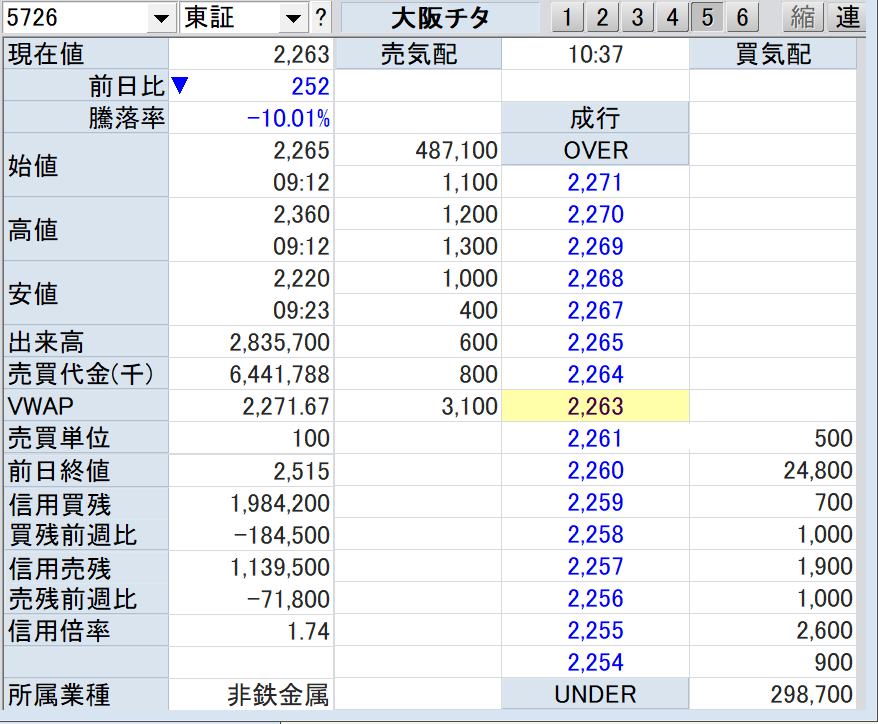 「大阪チタン」(5726)の 板状況