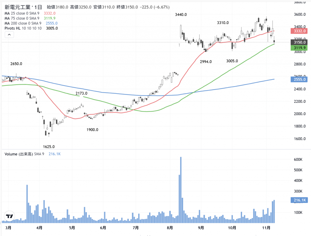 「新電元」(6844) の日足