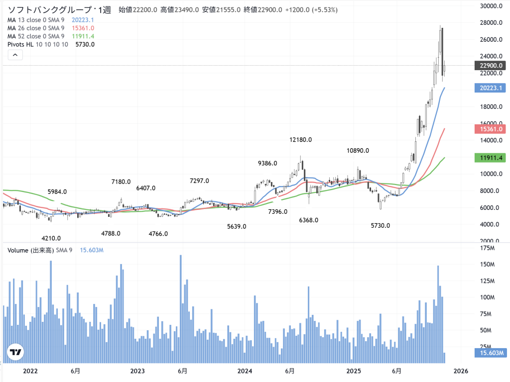 「ソフトバンクG」(9984) の週足