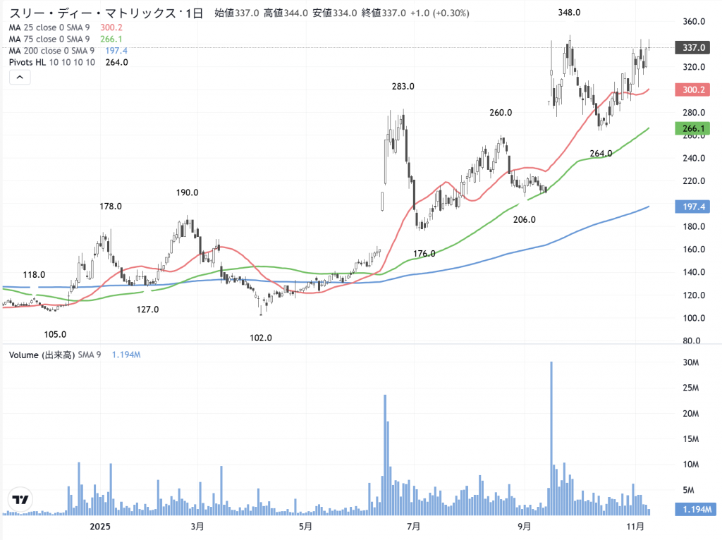 「3Dマトリックス」(7777) の日足