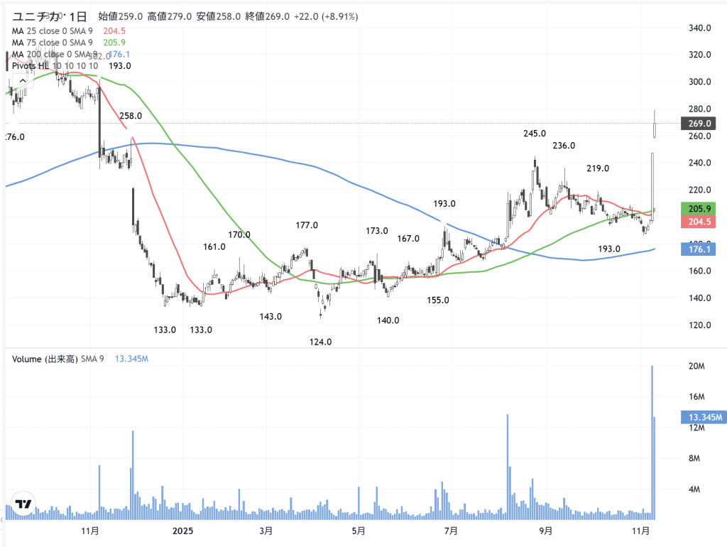 「ユニチカ」(3103) の日足