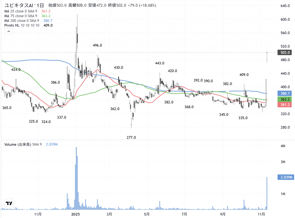 「ユビキタス」(3858) の日足