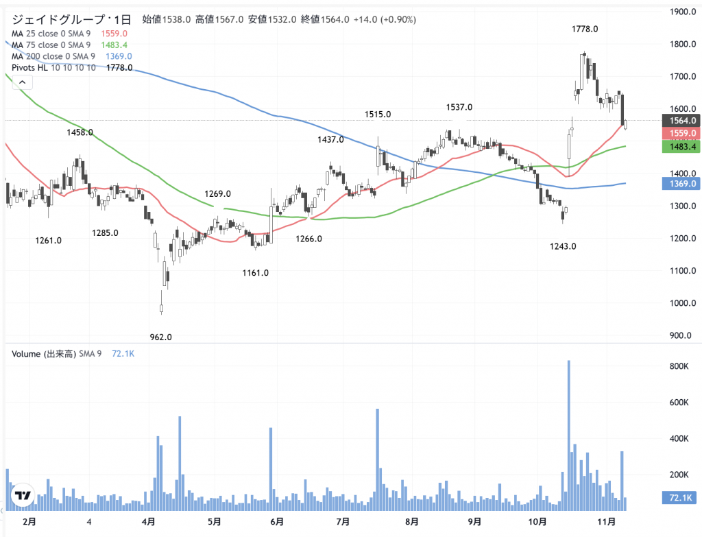 「ジェイドG」(3558) の日足