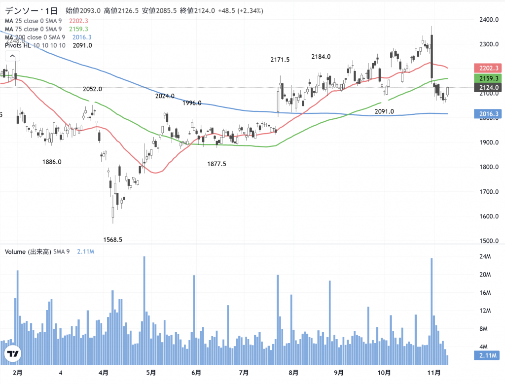 「デンソー」(6902)の 日足
