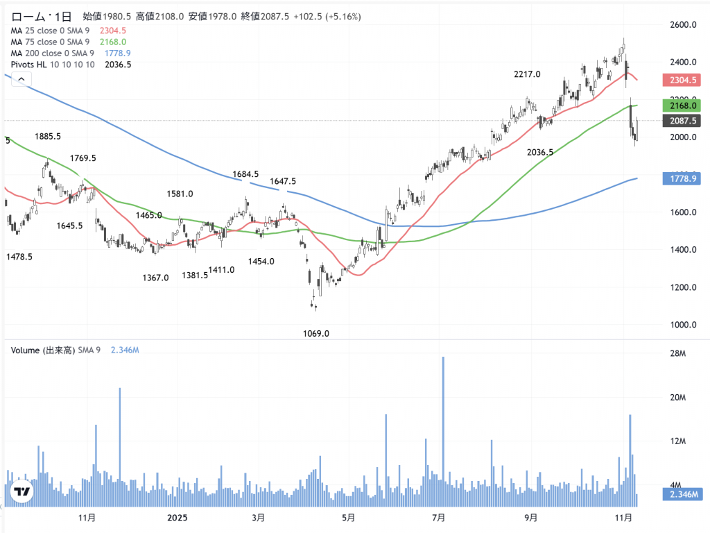 「ローム」(6963) の日足