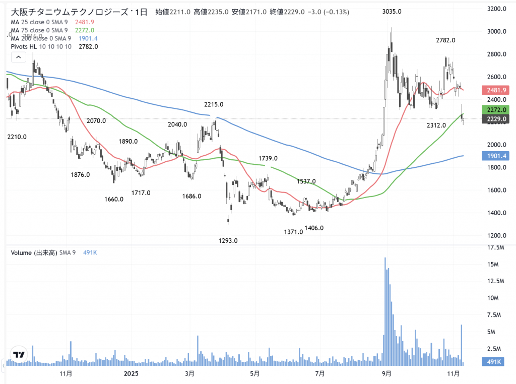 「大阪チタン」(5726)の日足