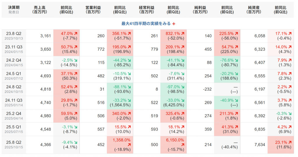 「ジェイドG」(3558)の 四半期推移