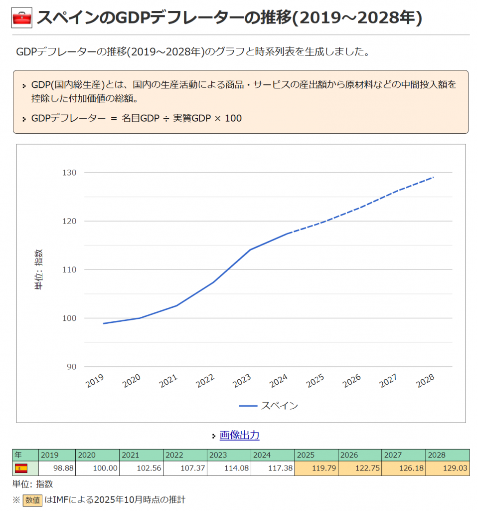 そこでカタルは予てから述べている「GDPデフレーター」を観て…みました。そのグラフが此方です。凄いですね。2020年が100ですが、今年は119、来年は122の予想だそうです。本当かな?