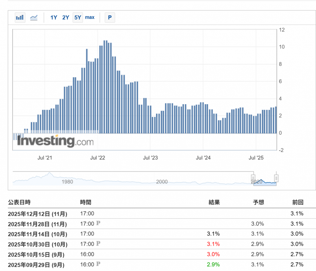 問題は、その政策の「弊害」と指摘される「消費者物価」の推移です。これは、前年比で観ないと…駄目でしょう。だから、そのグラフを探しました。ネットは「便利」でしょう。直ぐに分かります。やはり…多少は高いですね。