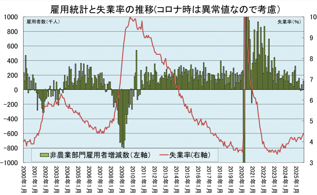 米国の雇用統計と失業率の推移