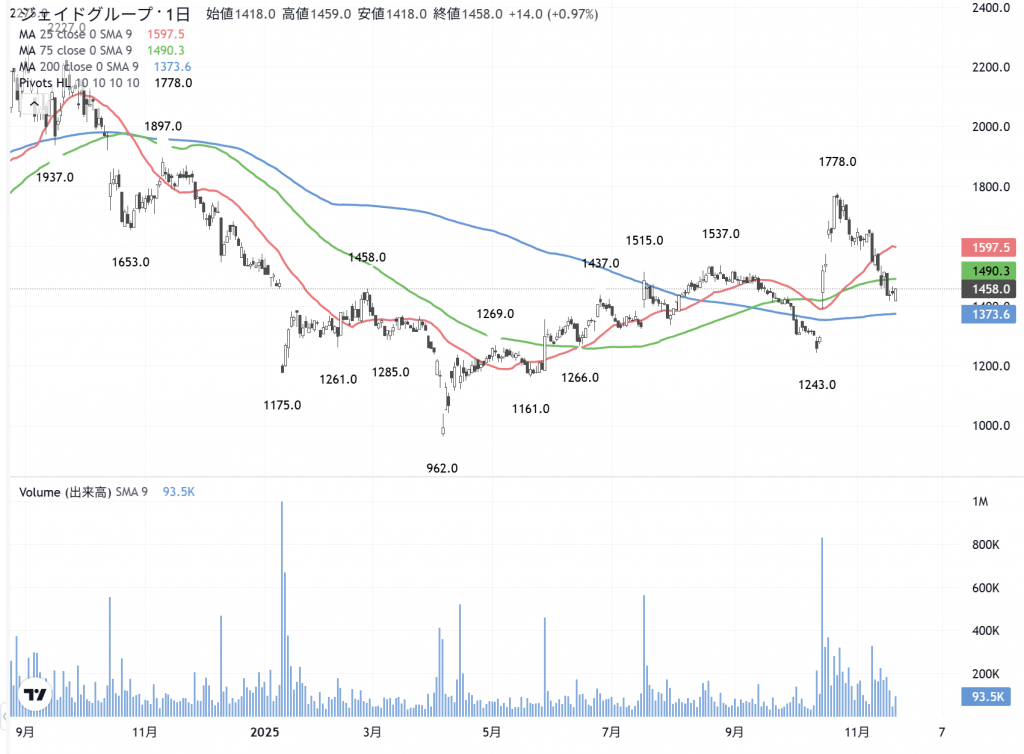 「ジェイドG」(3558)の 日足