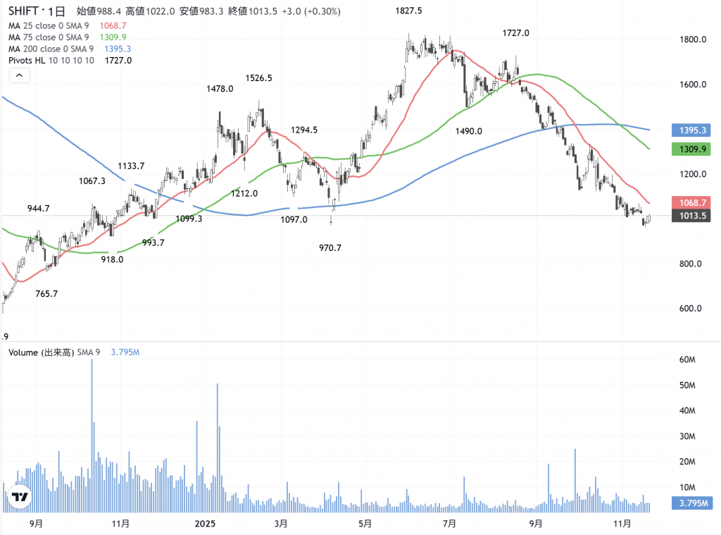 「SHIFT」(3697)の日足