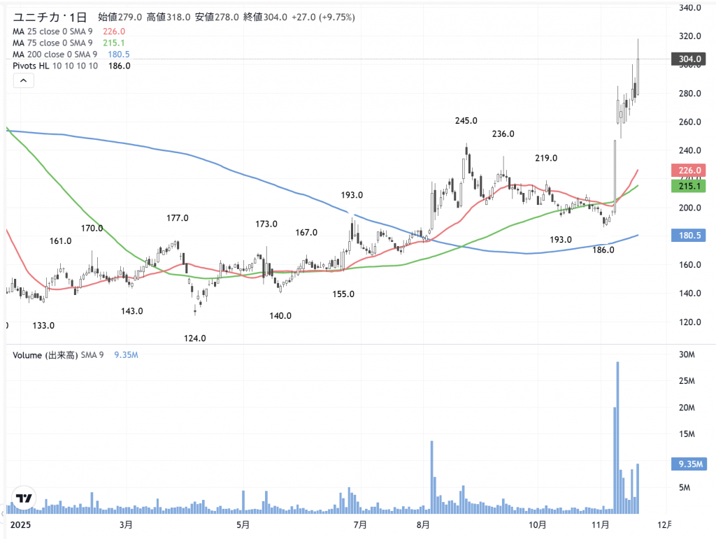 「ユニチカ」(3103) の日足