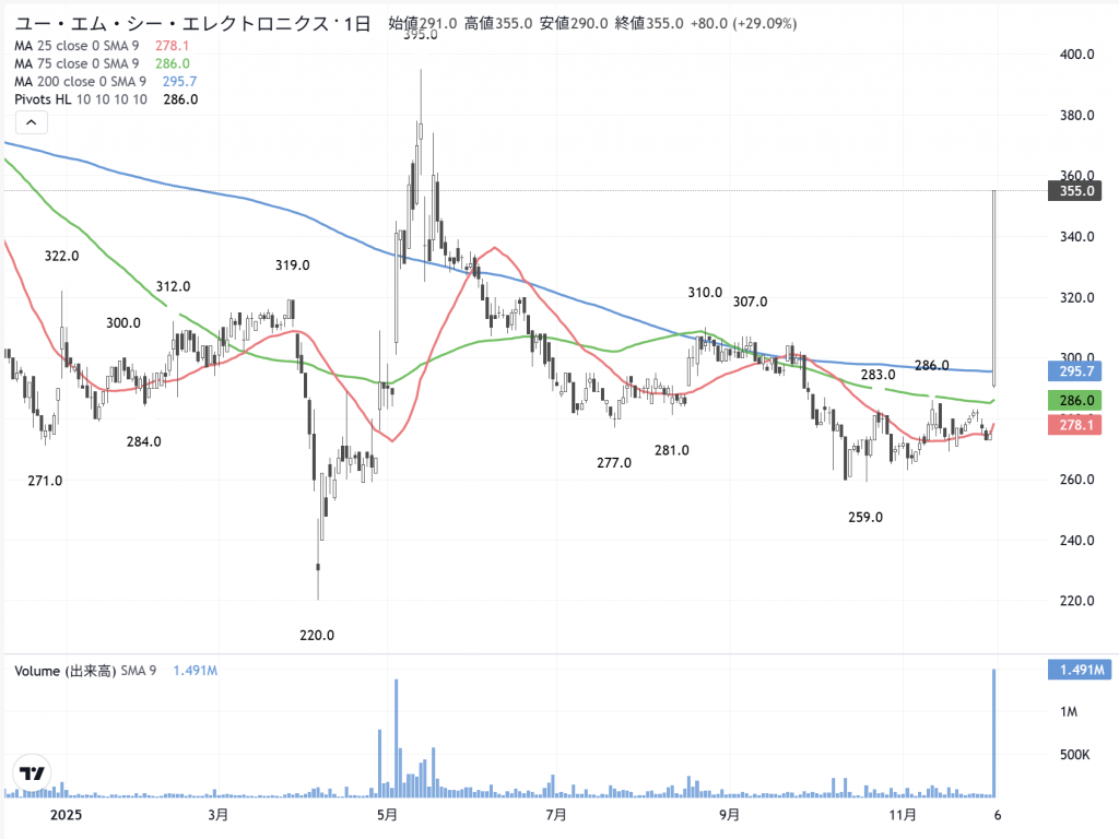昨日も、またカタル銘柄が「ストップ高」していました。「UMCエレク」(6615)です。この事件も「粉飾決算」でした。でも「トヨタ自動織機」(6201)が、340円で株を引き取り…その株価を下回っていたから、「採算に合」うと思って買っていた時期があります。