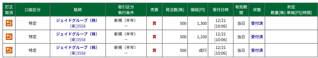 そうして1330円と1300円に更に500株ずつ…買い物を用いました。この口座は「雪だるま」の口座です。いつもカタルは有言実行です。