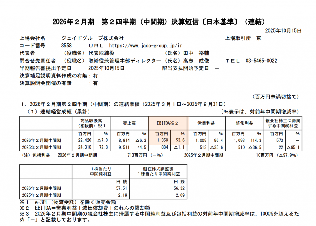 ジェイドGの決算短信