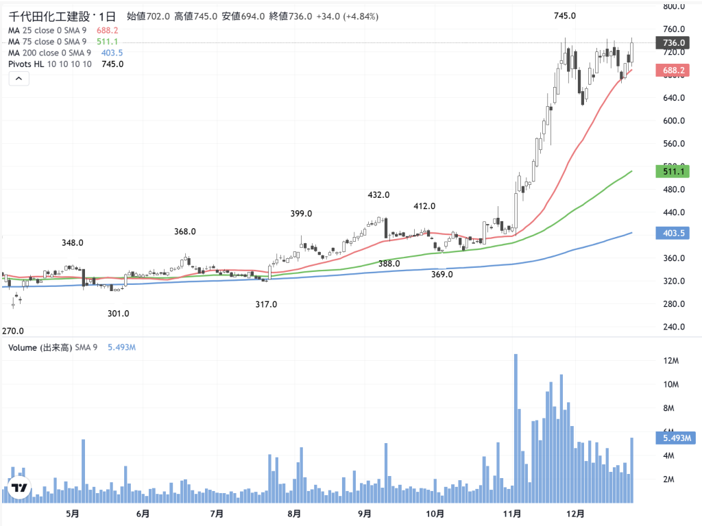 今日は…「千代化」(6366)と「Jトラスト」(8508)のチャートを観ましょうか…。「千代化」は、既に相場になって、高くなった「株価位置」を維持できるかどうか…。カタル自身は、もともと…ずっと「4ケタ銘柄」の実力株だと思ってきました。問題は、その時間軸です。