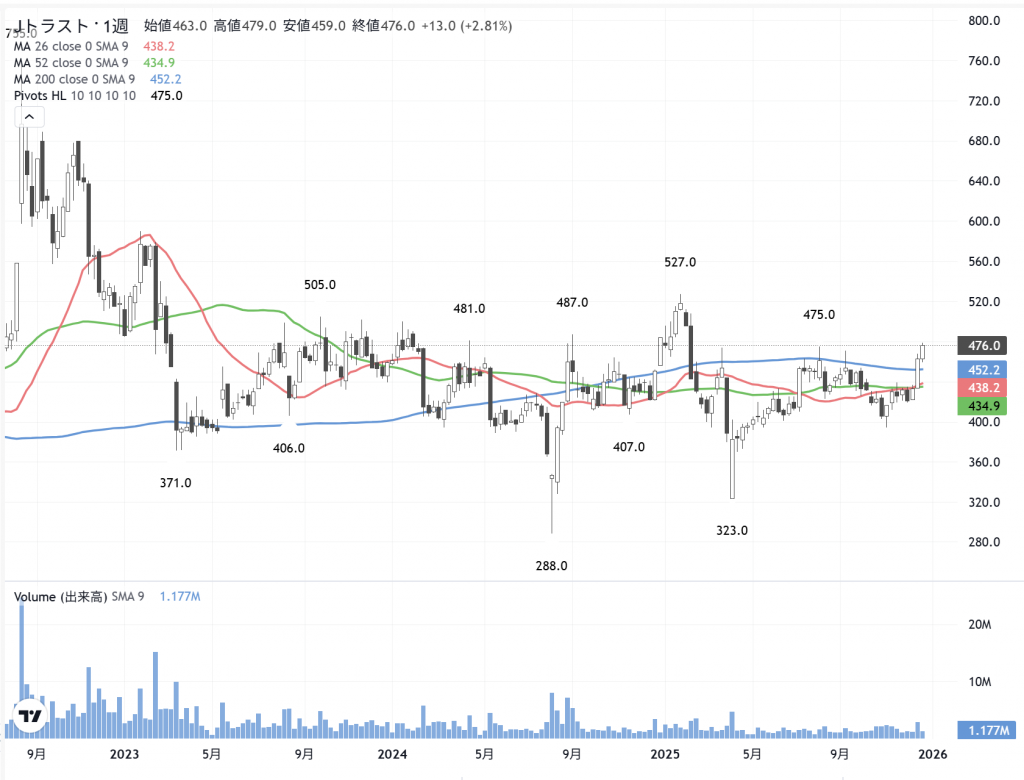 だから株価が反応をする筈ですが、たぶん…「需給バランス」の問題があるのでしょう。日足では、分かりにくいから「週足」を付けておきましょう。チャート論のお勉強ですが、皆さんは。目先をやっているなら、せめて200日線が完全に上昇波動に入っている銘柄を主体にすべきでしょう。