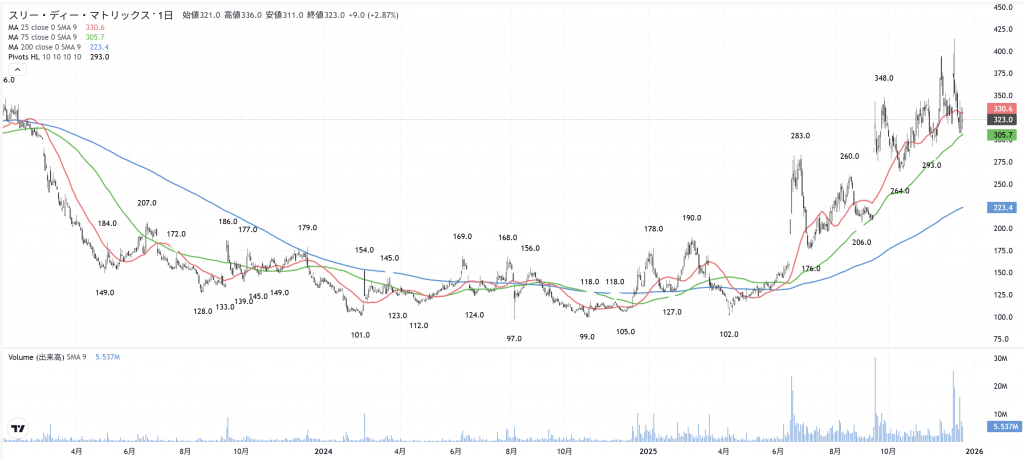 時間軸を延ばした「3Dマトリックス」(7777)の日足